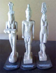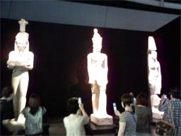 左から豊穣の神ハピ・ファラオ像・王妃像です。